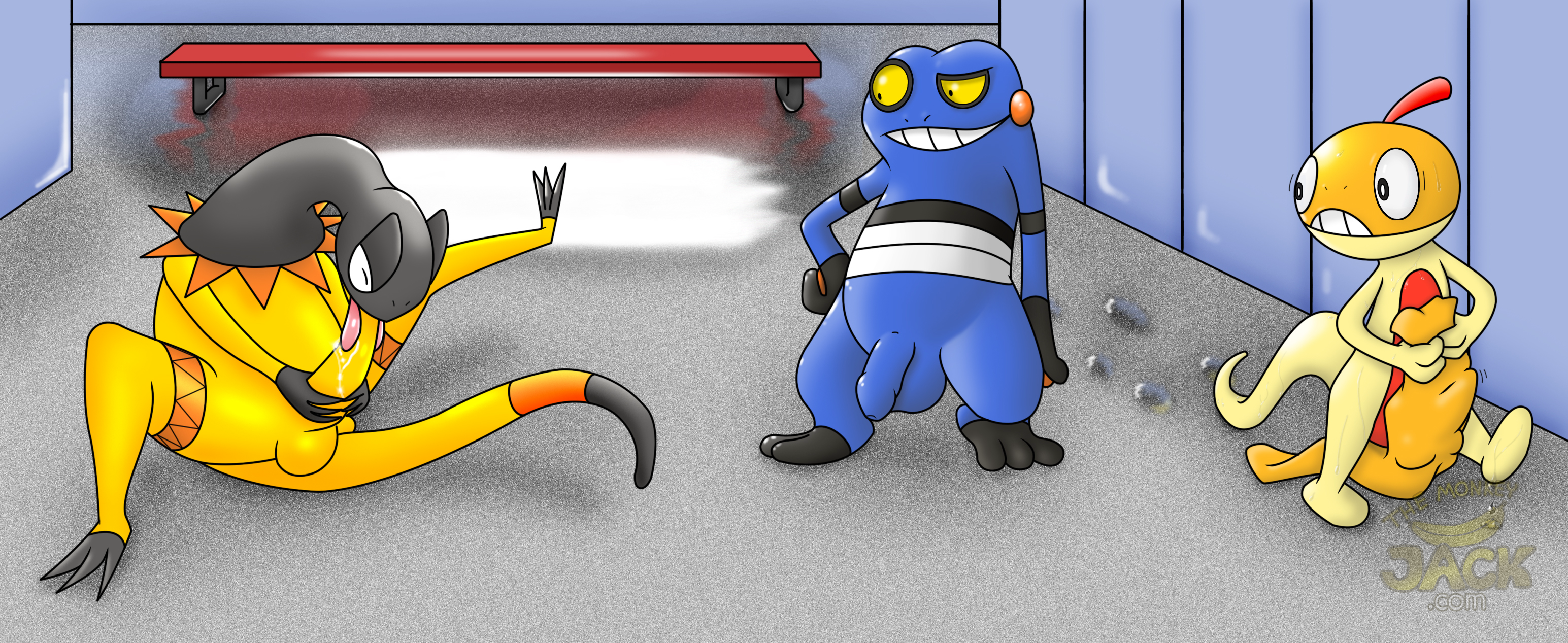 There was a small commotion today in the Gym. Zoomy, the Heliolisk entered the locker room, sat himself down and started going down on his own cock right there in the middle of the room. It's hard not to gawk when something like that is going down.