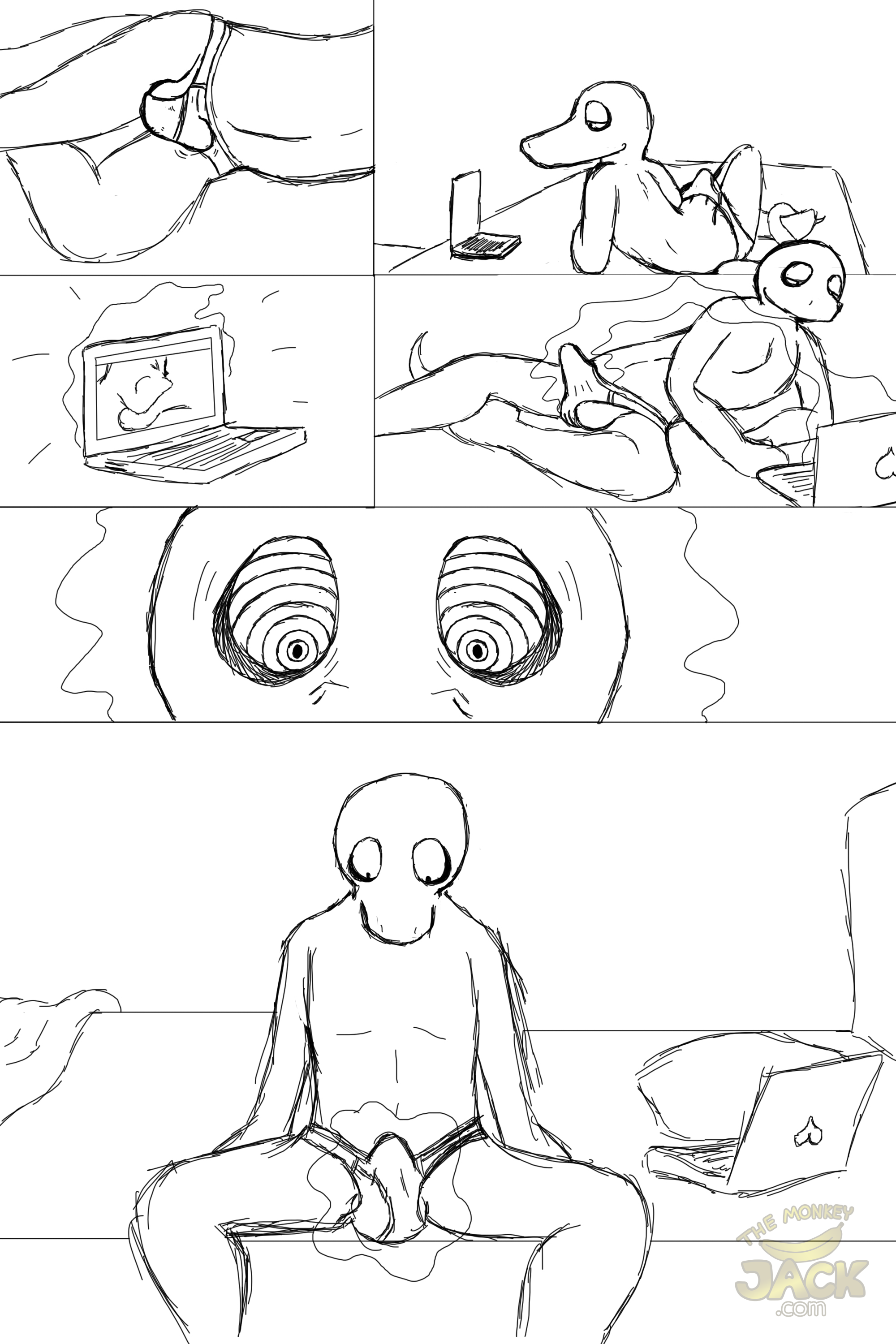 He's getting into the porn, when suddenly... some unseen force enters his cock from through the computer.