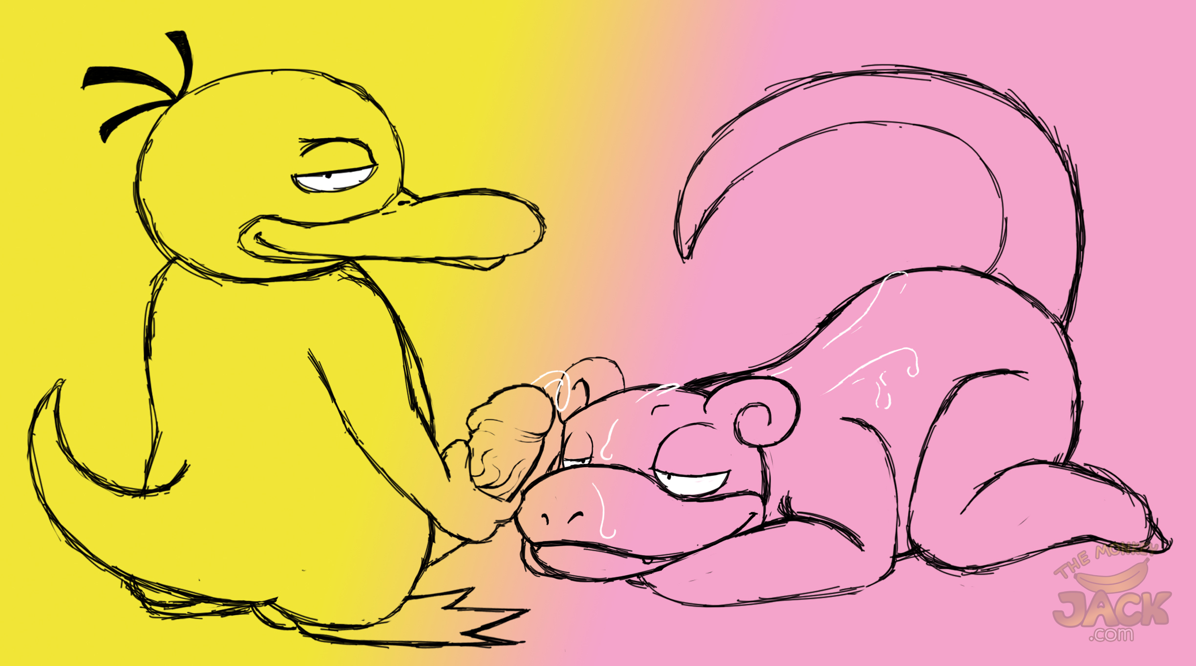 A flaming gay Psyduck and Slowpoke couple playing cummy games.