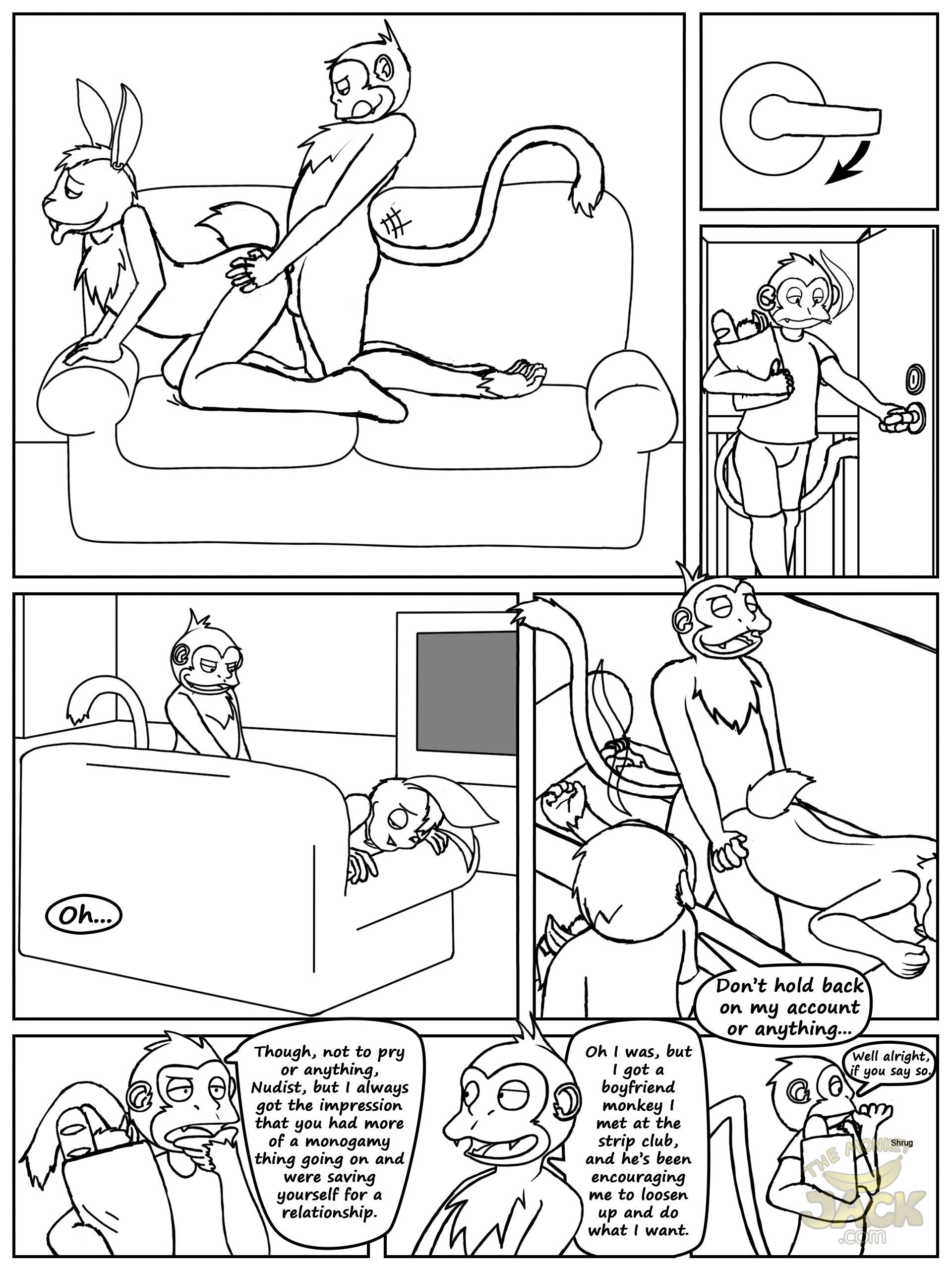 A story about a monkey who decides he can't bear to wear clothes anymore... but he picks a questionable time to make that decision-- right in public in broad view of everyone at college. He is quickly expelled, but a friendly open-minded future roommate monkey gives him a place to stay and assistance getting back on his feet. Follow Nudist Monkey (that's his name) and the new friends and acquaintances he makes along the way as they all go through life while enjoying everything that makes nudity so great.