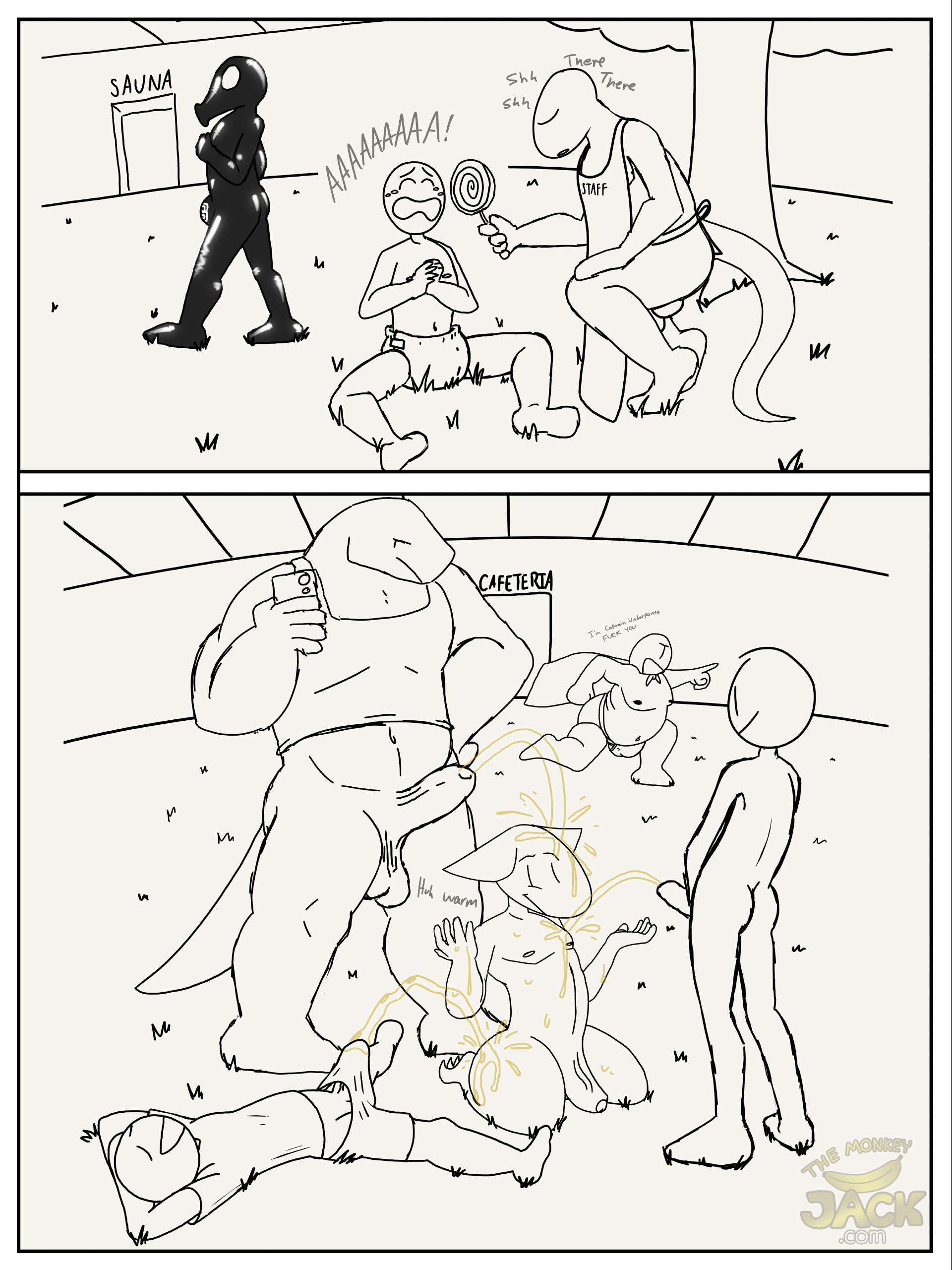 I woke up one morning with this idea for a spa where as soon as you step in the door, somehow you are stripped of your inhibitions. You can't help but live out your guilty pleasures or whatever impulses come to you at a given moment, and at the same time, you are incapable of being offended by the actions of other spa goers. So, while you'll certainly see, and exhibit embarrassing, rude, or even offensive behaviors, nobody is bothered by it. Nobody CAN be bothered by it.