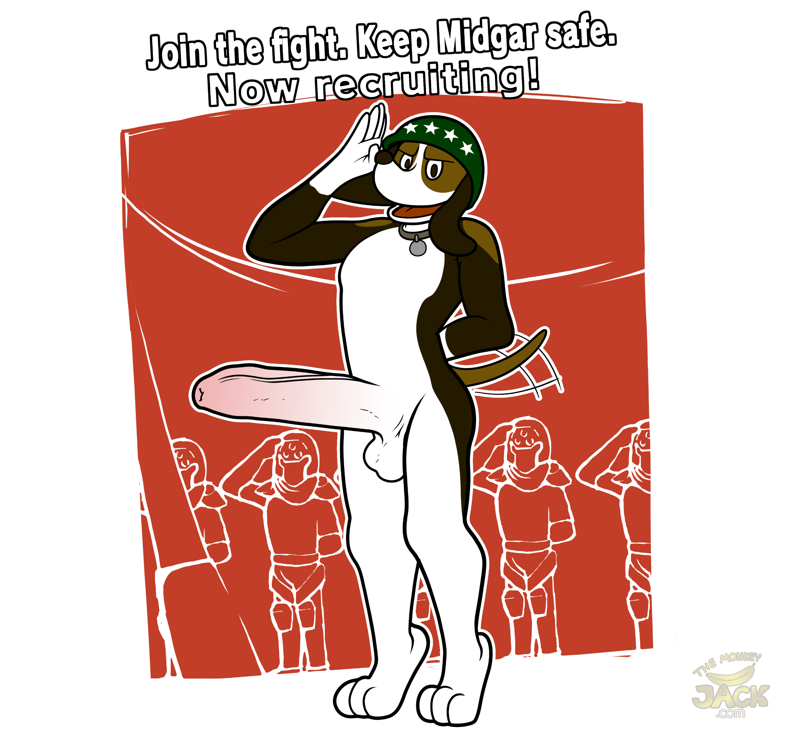 Recruitment really saw an uptick when Shinra began running ads of their mascot Stamp, stiff at attention, anthropomorphized and sporting an uncut hyper cock. Seems they figured out what patriotism is all about.