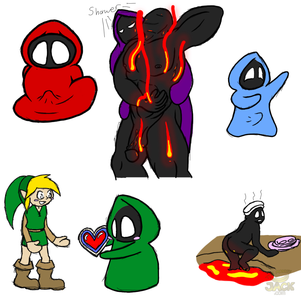 Subrosians are the subterranean race from Zelda: Oracle of Seasons and Oracle of Ages. Lava bathing and dancing are some of their common activities, so here they are doing some of that, with big dicks and boners of course.